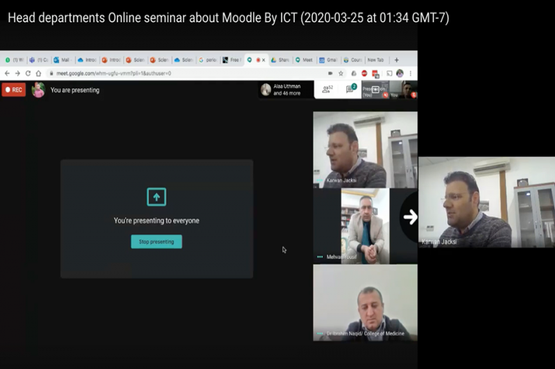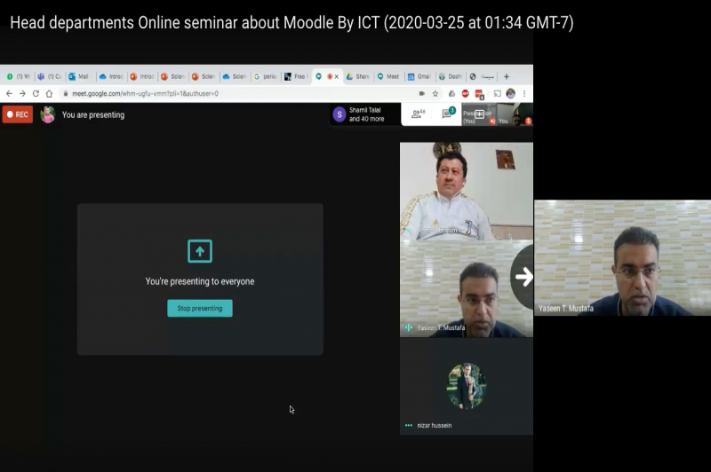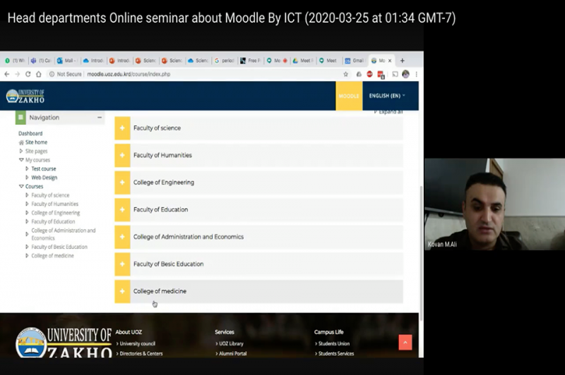 On Wednesday, March 25, 2020, in the presence of Assistant Professor Dr. Karwan F. Sami-Vice President of the University for Students Affairs and Professor Dr. Yaseen T. Mustafa-Vice President of the University for Scientific Affairs and Postgraduate Studies, the Director of the Statistics and ICT Center Mr. Kovan Abduljabar conducted an online seminar for lecturers of the faculties and colleges of the University of Zakho.