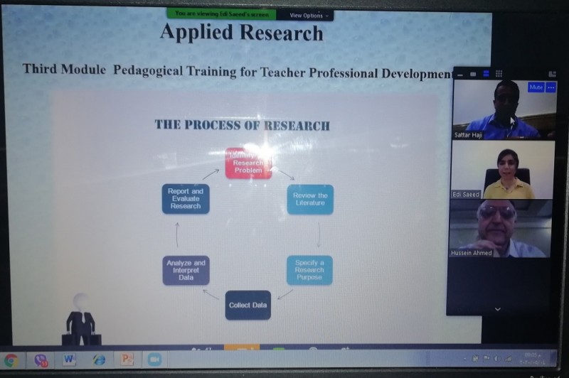 On Monday, 4/5/2020, the President of the University of Zakho met with the members of the Center of Pedagogy Training and Academic Development to discuss the resumption of the pedagogical course that was suspended due to the outbreak of the Coronavirus.