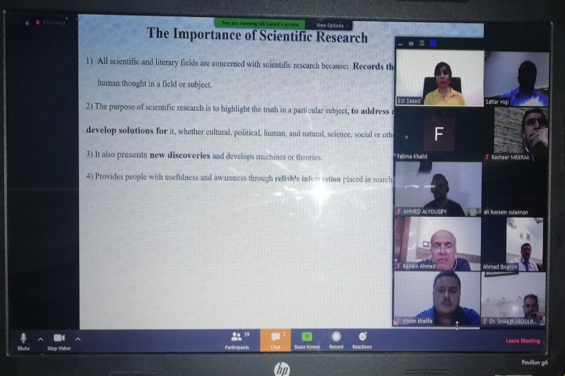 The meeting was held in the presence of the members of the center consisting of Prof. Sattar Jabbar Haji, Director of the Center, along with Prof. Hussein Ahmed from Nawruz University and Dr. Rizghar Mustafa and M.D. Muhammad Ibrahim from the University of Duhok, and Ms. Edi Saeed and M. Schlier Ahmed from the University of Zakho.