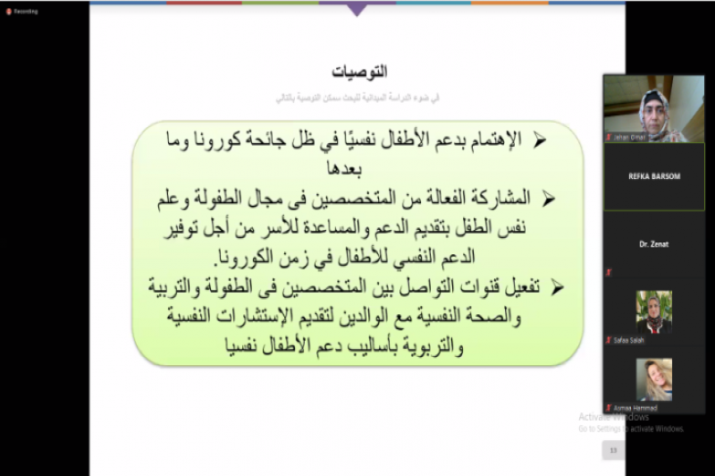 In the seminar, she talked about the psychological impact of quarantine life on children and the obstacles facing parents in the current situation.