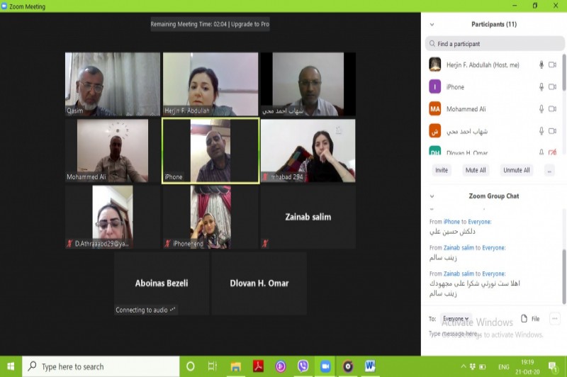 On October 18th, 2020, the Language Center at the University of Zakho started the Tawawkari English Language course. Due to the spread of Covid-19, the manner of delivery of the course was online according to the order from the Ministry of Higher Education. The course started on the 18th of October and will finish on the 12th of November 2020. Unlike the previous Tawawkari course duration, it was decided by the High committee that the course lasts for four weeks, and will be studied four days a week, and four hours per day. The platform used for the delivery of online classes is 'Zoom'. At our language center we have two levels of Tawawkari language course: Pre-intermediate and Intermediate levels. The curriculum for this course is 'interchange'.