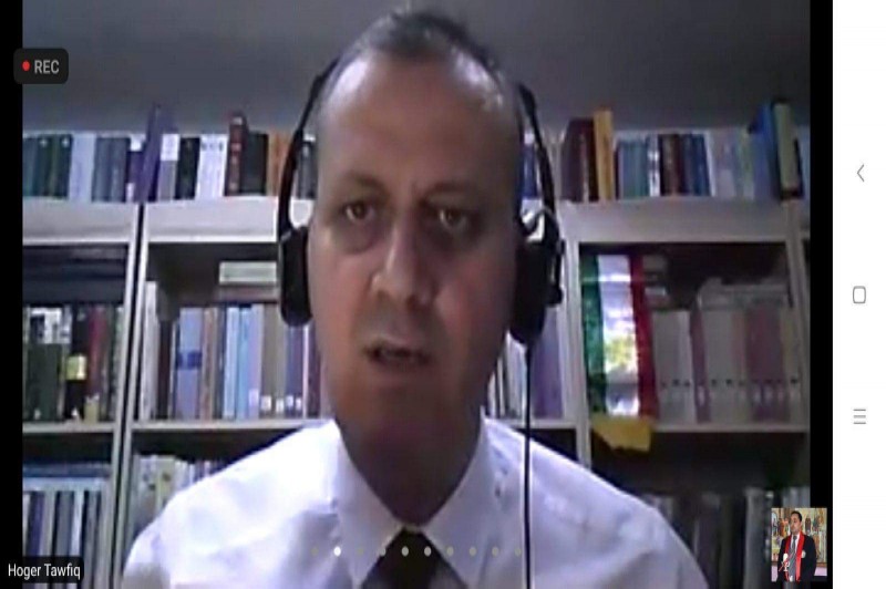The Dean of the Faculty of Humanities at the University of Zakho, Prof. Dr. Huger Taher Tawfiq, participated in the Ostor symposium for remote historical studies held today, Saturday, by the Arab Center for Research and Policy Studies, entitled "Trends in Historical Writing in Iraq Today".