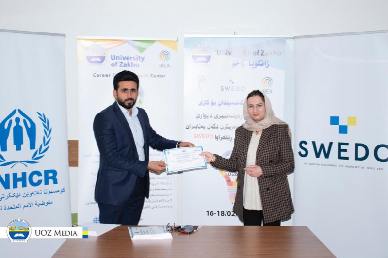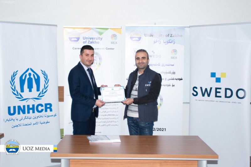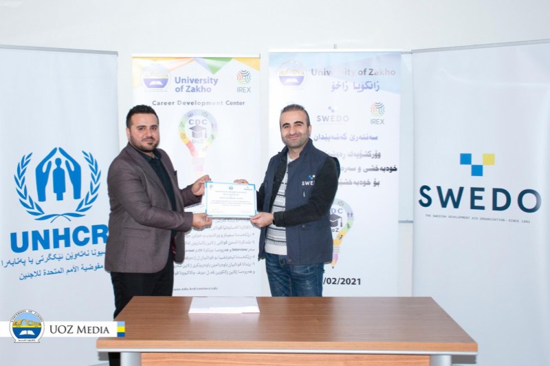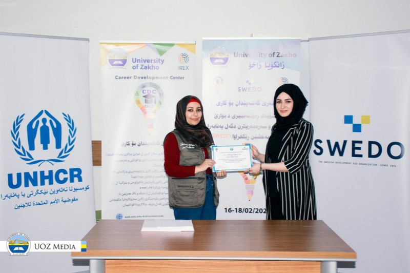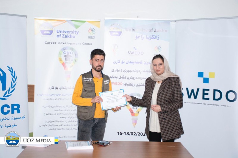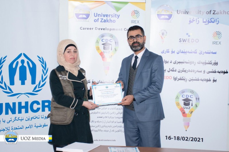 It is worth mentioning that the Participation Certificates were given to all of the attended volunteers with the presence of Ms. Berivan Mohammad Ahmad- Director of CDC, Mr. Lazgin Halo-the Administration Director of the University of Zakho, Dr. Aveen Hassan Mohammed -the Head of English Department and Mr. Nechirvan Hasan Jawzal -the coordinator of CDC at the Faculty of Humanities.