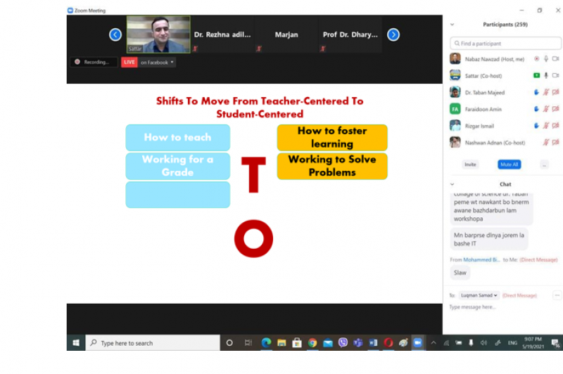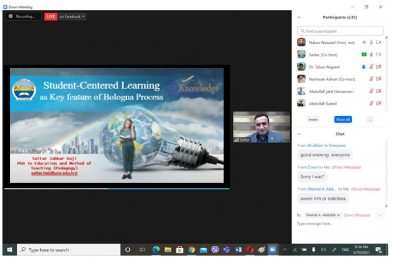 On Wednesday, May 19, 2021, Assistant Professor Dr. Satar J. Haji-Director of Pedagogical Training and Academic Development Center participated in a workshop about the Bologna Process entitled "Student-Centered Learning as a Key Feature of Bologna Process" at Knowledge University. It's worth mentioning that (300) academic staff from the Kurdistan universities and a number of lecturers from the University of Zakho participated in this workshop.