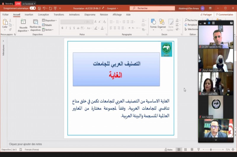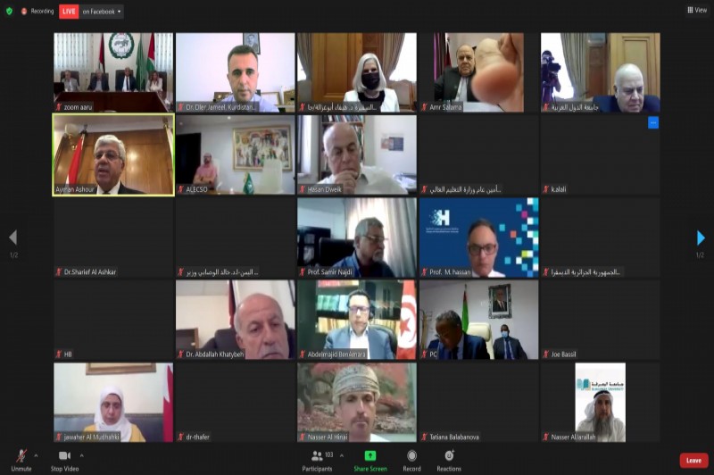 The meeting witnessed the participation of the Minister of Higher Education and Scientific Research of the Arabic Republic of Egypt and the president of the current session of the Conference of Arab Ministers of Higher Education and Scientific Research, the participation of the Director General of the Arab Organization for Education, Culture and Science and the Secretary General of the Association of Arab Universities.