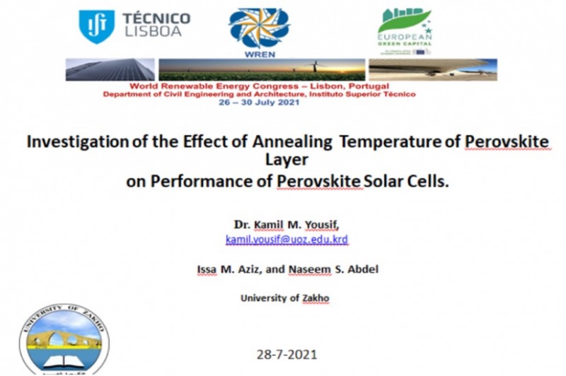 On the 26 – 30 July 2021, Dr. Kamil Mansoor Yousif, a member of the Environmental Sciences Dept., University of Zakho, participated via the ZOOM online platform, in an international academic conference [World Renewable Energy Congress – 2021, Lisbon, Portugal].