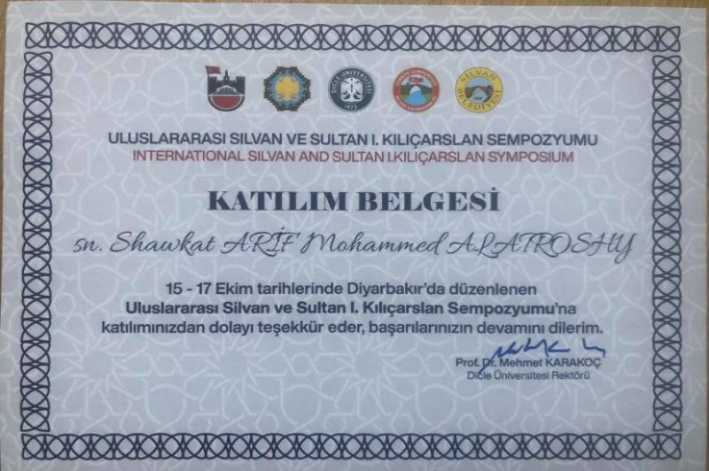 ل ڕۆژا 15/10/2021 ماموستایێ زانكۆیا زاخۆ دكتۆر (شوكت عارف محمد) ماموستا ل پشكا مێژوویێ ل زانستێن مرۆڤایه‌تى پشكدارى د كۆنفرانسێ زانستى یێ نیڤده‌وله‌تى مێژوویا میافارقین دا كر ئه‌وێ هاتییه‌ ڕێكخستن ژلایێ زانكۆیا دیجله‌ ڤه‌ ل باژێرێ ئامه‌دێ وه‌لاتێ توركیا.