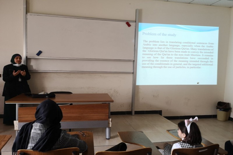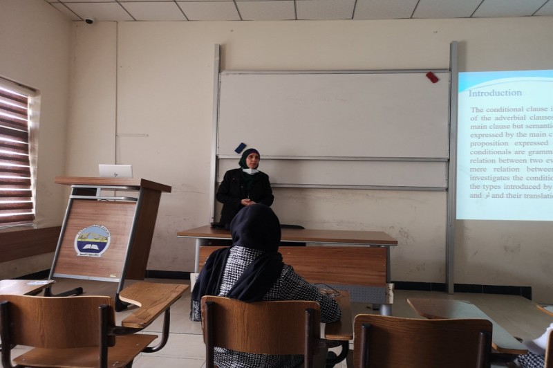 On Thursday, March 10, 2022, a seminar entitled “A Systematic Study of Conditionals in Glorious Qur’an with Their Interpretation in English” was presented by Ms. Lozan A. Rasul, Lecturer of English Language Department at the Faculty of Humanities.