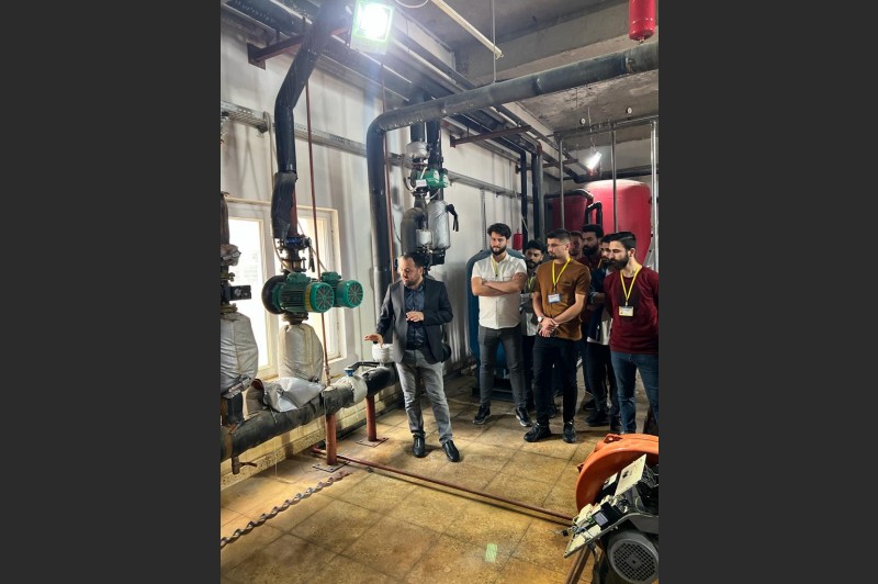Throughout the visit, Engr. Abdulwahid J. Salih presented a practical explanation about mechanical equipment and electrical devices and how to deal with and maintain them. Moreover, he focused on identifying their most prominent parts and provided students with information about those devices and equipment.