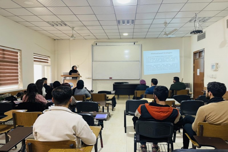 On Wednesday, November 30, 2022, a seminar entitled “Motivating Students in EFL Classes” was presented by Ms. Marwa I. Abdulghani, Lecturer at the English Language Department at the Faculty of Humanities.