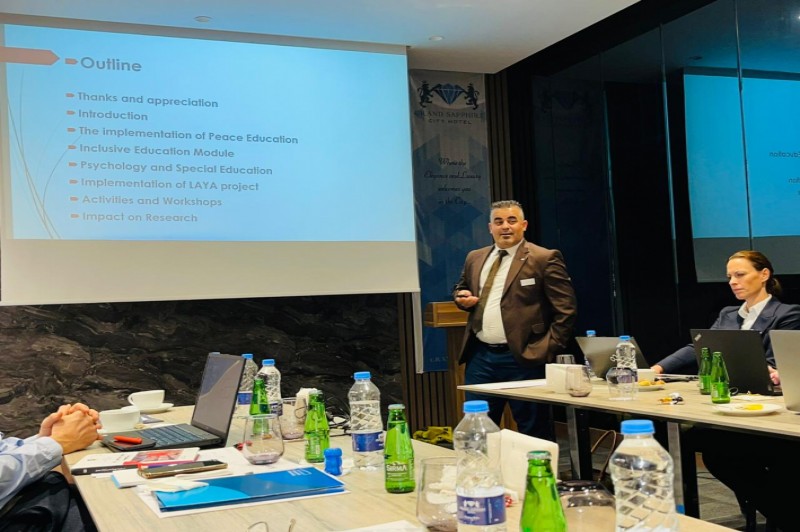 The University of Zakho Team headed by Asst. Prof. Mr. Ivan H. Murad, delivered their presentation in which they listed all the internal and external activities they have conducted out of their active role in the project. They also listed the number of modules they have added as programs of study with their specifications and the subjects they cover. It is worth mentioning that a number of seminars, workshops and training course were conducted by our team to some schools, kindergartens and a number of teachers of the local directorate of education in Zakho Independent Administration. Also, out of the participation in the project, a number of masters and PhD proposals were accepted at the Psychology department for the vital need of the expertise in the department and the region as a whole. Also, worth mentioning that a joined chapter has been written by Asst. Prof. Ivan H. Murad and Prof. Dr. Frederike Bartel on inclusive education in Iraq and Kurdistan region. Lastly, a hint was made to the very effective study conducted by Prof. Dr. Hariwan Zikri which has linked Math with Learning Disabilities which attracted the attention of the three German hosting universities.