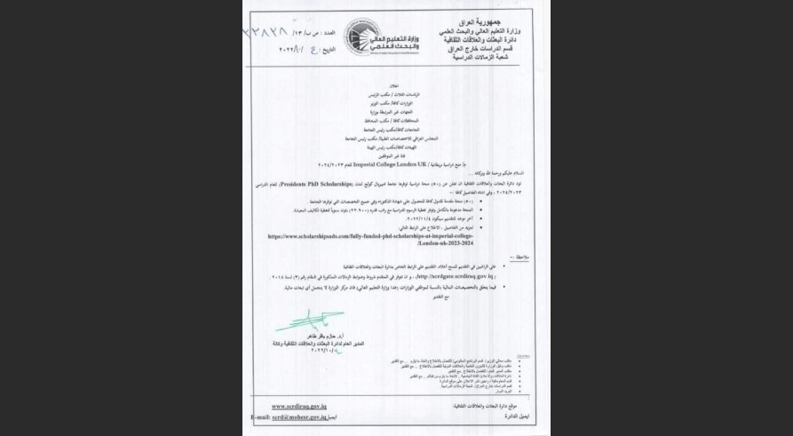 The Ministry of Higher Education and Scientific Research Announces the Opening of Candidacy for Eleven Leadership P...