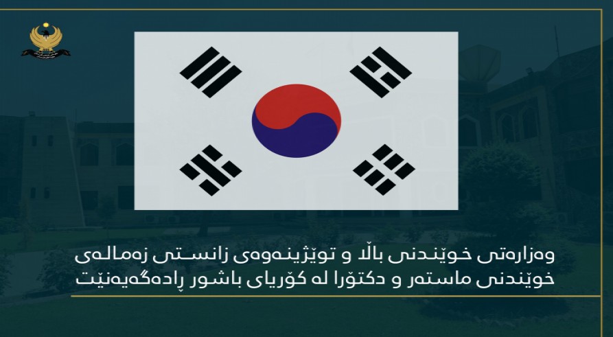 وهزارهتا خواندنا بلند دهرفهتێن خواندنا ماستهرێ ل وهلاتێ كوریا باشوور رادگههینیت