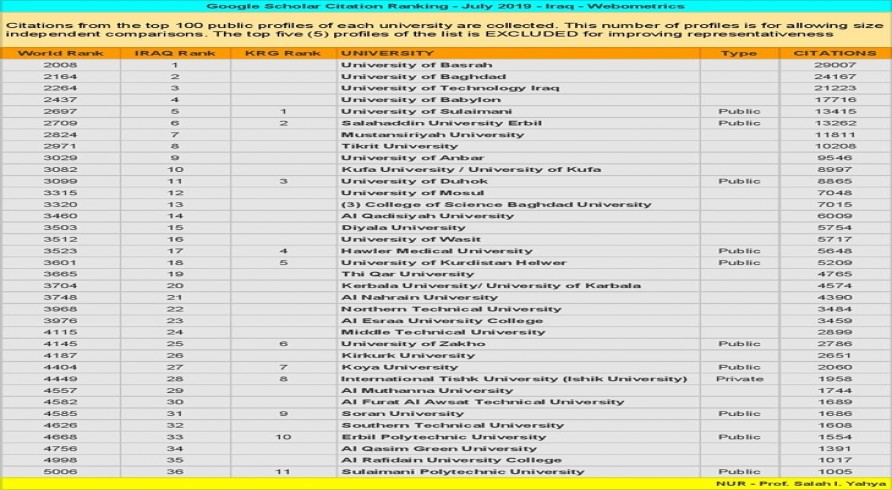 The University of Zakho Is Ranked Sixth in the Kurdistan Region According to Webometrics
