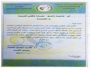 The Iraqi National Olympic Committee Congratulates the Deanship of the Faculty of Education