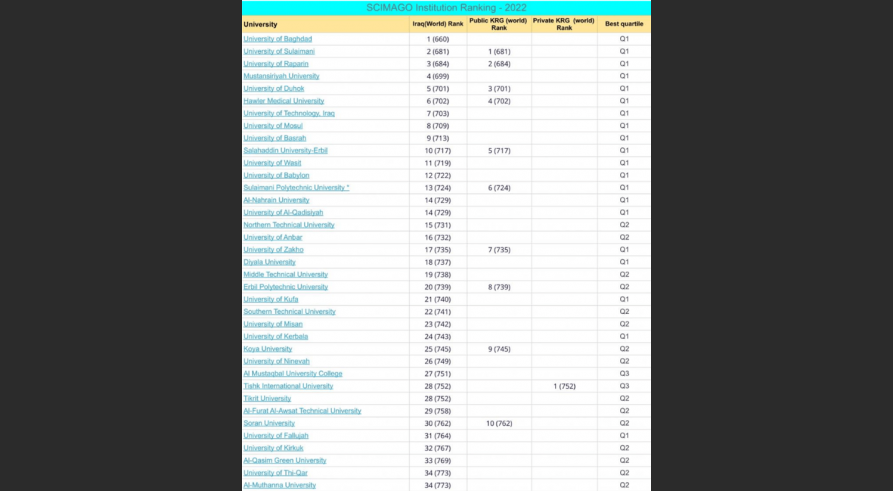 The University of Zakho Has Been Included in the SCImago Institution Rankings for the First Time