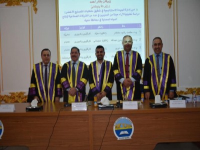 ئەڤرو 6/9/2021 ل ھولا روژ یا کولیژا کارگێری و ئابووری گەنگەشا ناما ماستەرێ یا قوتابیی خواندنا بلند ژ پشکا زانستێن کارگێری(زیرڤان بشار احمد ) ھاتە ئەنجامدان ل ژێر ناڤونیشانێن (دور إدارة الجودة الاستراتیجیة في تحقیق متطلبات التصنیع الاخضر)