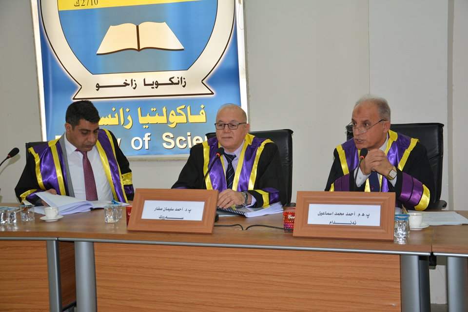 On Sunday, February 25, 2018, at 10:00 am, a master thesis entitling "Impact of International Environmental Agreements on the International Trade of Oil Countries for the Period 1990-2015" was discussed by Ms.Zheyan A. Ali at the hall of Chemistry- Faculty of Science.