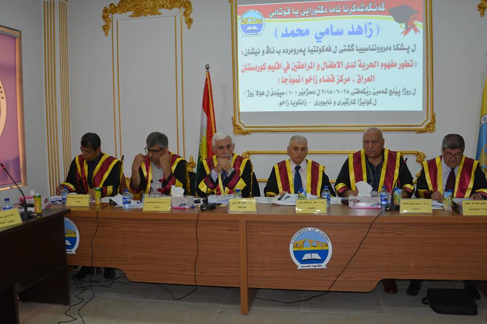 On Thursday, June 28, 2018, at 10:00 am, the doctoral dissertation of Mr. Zahid S. Mohammed from Department of Psychology, was discussed at Roj Hall-College of Administration and Economics.
