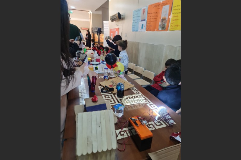 It is worth mentioning that the students of the school from all stages participated in the exhibition with a variety of different projects. The volunteers of the center were happy to benefit from their projects.