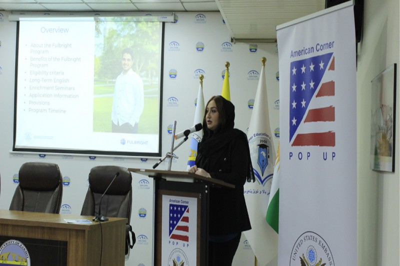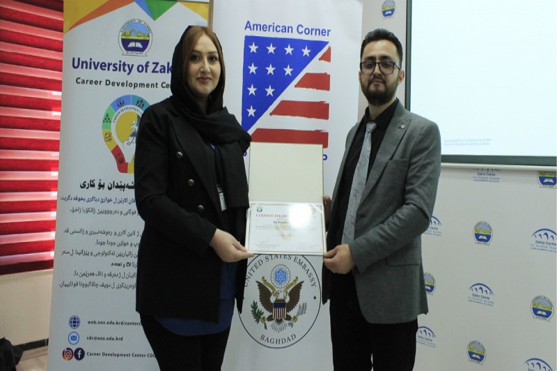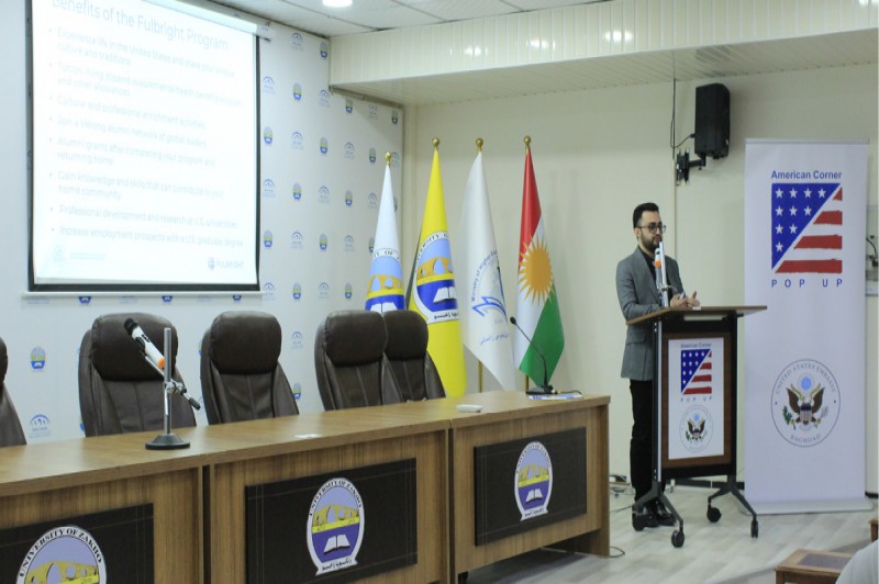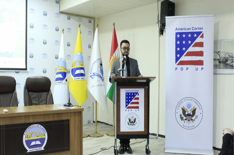 On March 7, 2023, in the presence of the College of Education coordinator of the Career Development Center unit at the University of Zakho Mr. Viyan Salim Haji, and a number of students and faculty members, the US Pop-Up Corner program was presented by AMIDEAST organization.