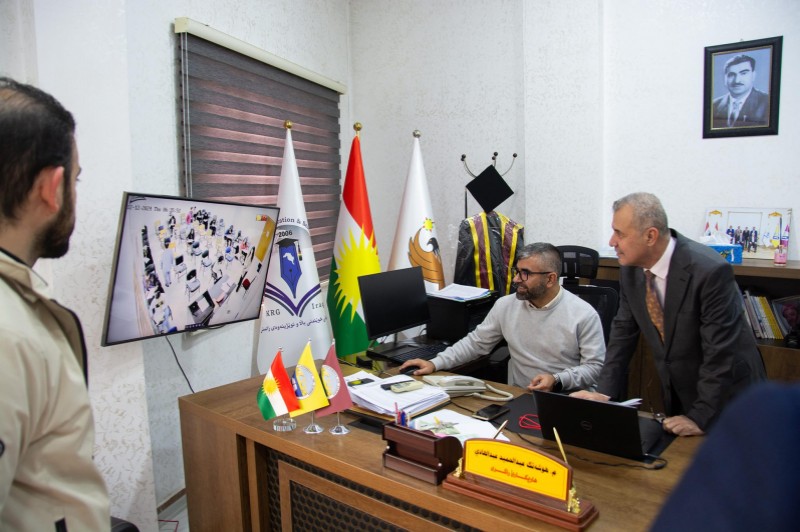 On Thursday, December 12, 2024, esteemed (Dr. Jasim Mohammed Abdu), Assistant President of the University for Scientific Affairs and Postgraduate Studies, and (Dr. Ramadan Jafar Mustafa), Assistant President of the University for Student Affairs, accompanied by (Dr. Sattar Jabbar Haji), Dean of the College of Education, visited the examination halls.