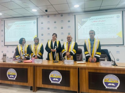 The Master thesis defense for the postgraduate student Sulin Nadir Abdulqadir was successfully held before a discussion committee on September 14, 2023. Several professors, English Language Department teachers, and some university and faculty members attended the event. Her Master's thesis was entitled “Nature, Mythologies, and Identity in a Selection of Joy Harjo's Poems” under the supervision of Assistant Professor Dr. Amel A. Mahmoud. After a lively discussion between the committee and the student, Sulin Nadir Abdulqadir was awarded a Master's degree in English literature.