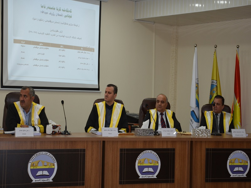 On Thursday, November 30, 2017, at 9:00 am, Mr. Qihtan R. Abdulliah, a graduate from the Department of History, defended his thesis entitled "The Position of the Kingdom of Jordan from the Lebanese Civil War (1990-1975). It is worth mentioning that the discussion was held at the Hall of Khalil Khayali at the Faculty of Humanities.