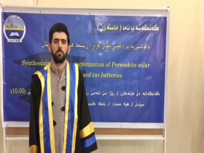 ل ڕۆژا سێشهمبێ ڕێكهڤتى (20/10/2020) ل زانكۆیا زاخۆ گهنگهشهیا نامهیا ماستهرێ یا قوتابییێ خواندنا بلند ل پشكا فیزیك بهرێز (عیسى مهدى عزیز ) ئهوا لژێر ناڤونیشانێ (synthesizing and characterization of pervoskite solar cells from reusedcar batteries) ل هۆلا سمینارا ل پشكا كیمیا فهكۆلتیا زانست هاته ئهنجامدان.