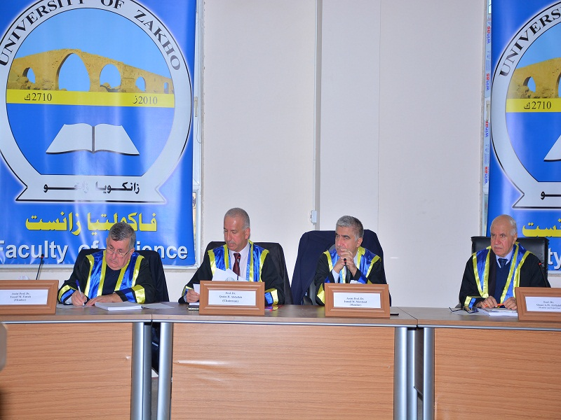On Sunday, the 11th of December, 2016 at 10:00 a.m. at the Chemistry Hall of the Faculty of Science, the Masters Thesis Defense of Mrs. Lina Naji Adam, a postgraduate student from the Department of Biological Sciences at the University of Zakho, on "PHYSIOLOGICAL EFFECTS OF SOME Punic ageratum FRACTIONS ON CONTRACTILITY OF ISOLATED AORTA IN FEMALE ALBINO RATS" took place.