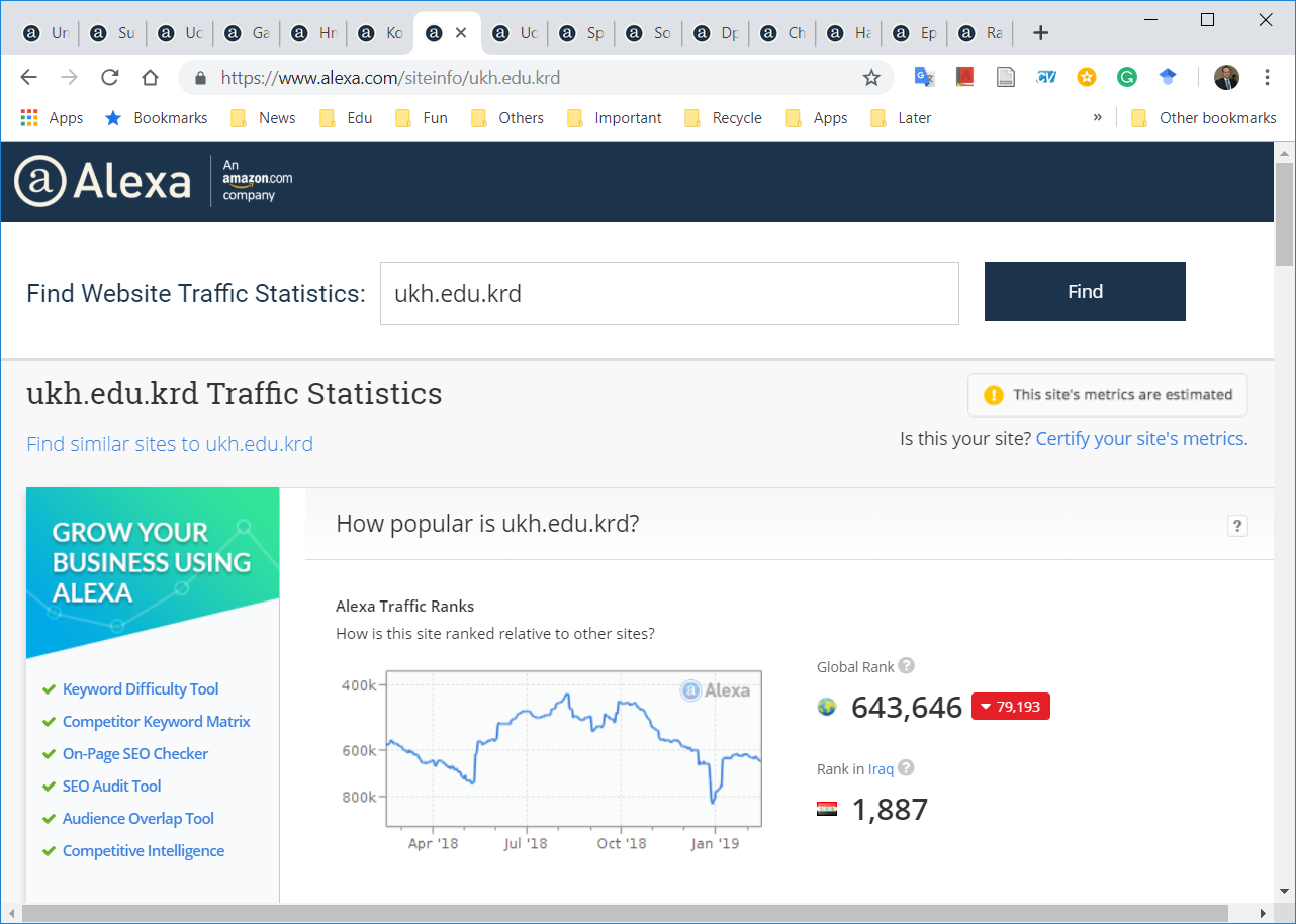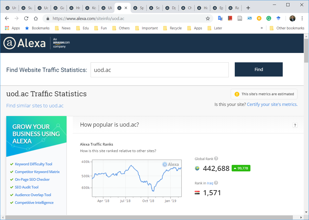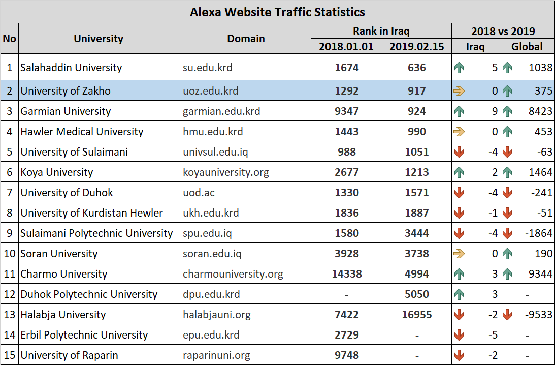 The Statistics and ICT Center at the University of Zakho informs the readers of the website of the University of Zakho that Alexa Company for the ranking of websites. In the ranking, the website (www.uoz.edu.krd) has achieved second place in the Kurdistan region as the best and most read web for the second year in a row. This progress shows the effortless work and service in providing reliable information in three languages; Kurdish, Arabic, and English. Likewise, it constantly develops new pages to serve students e.g. Xedeng page. Therefore, the director and the staff of the Statistics and ICT Center congratulate the staff and students for this achievement.