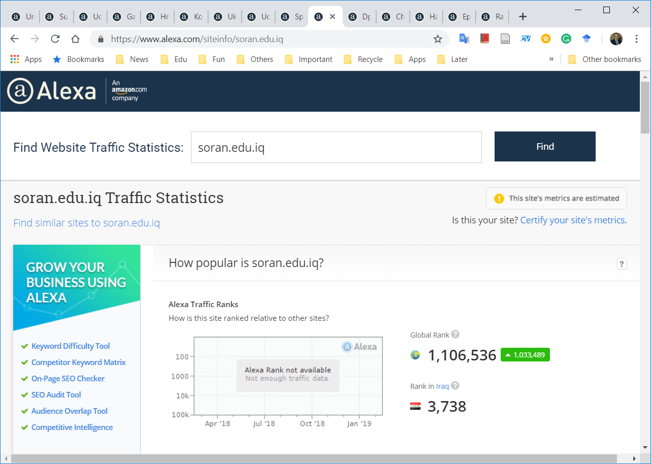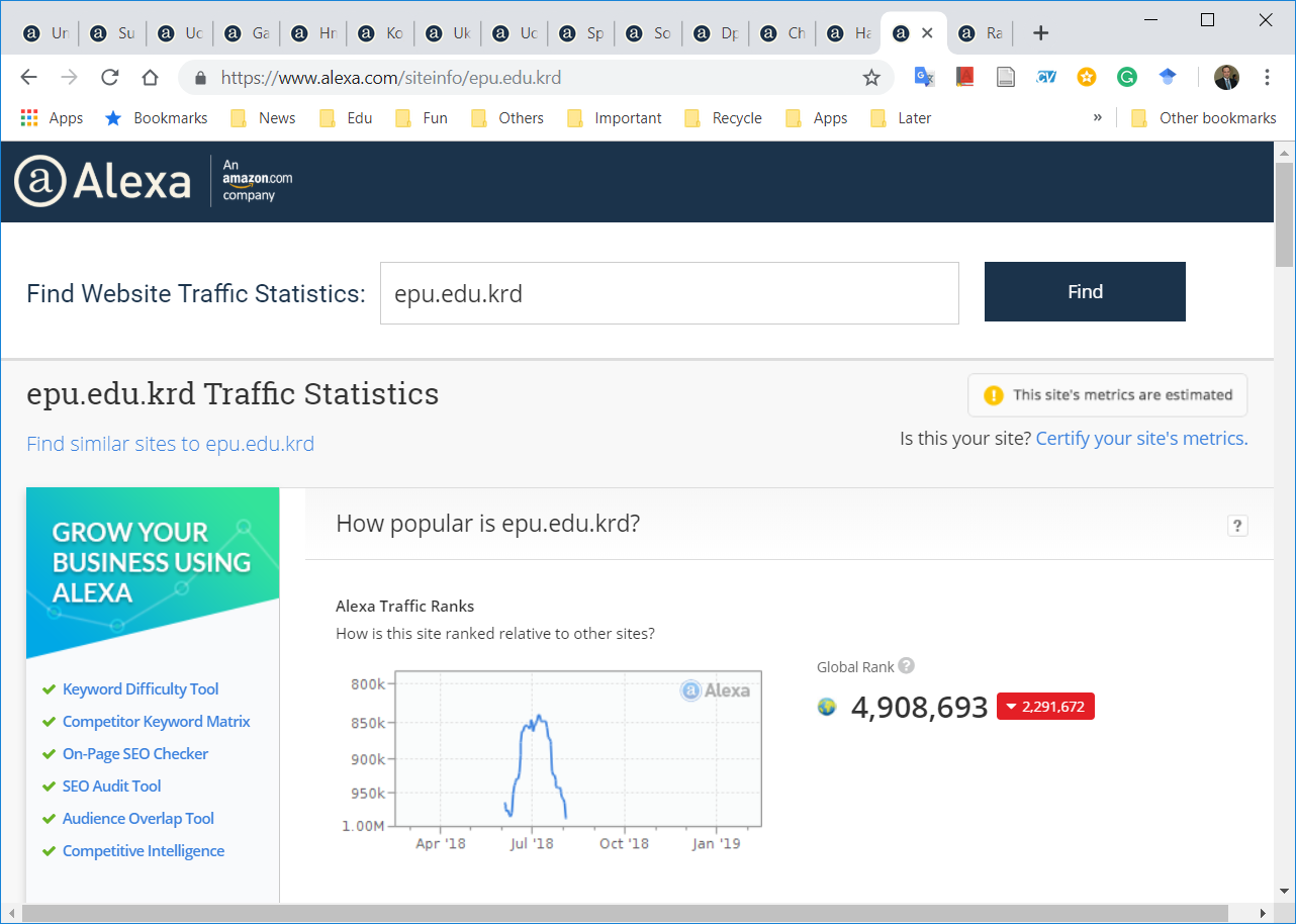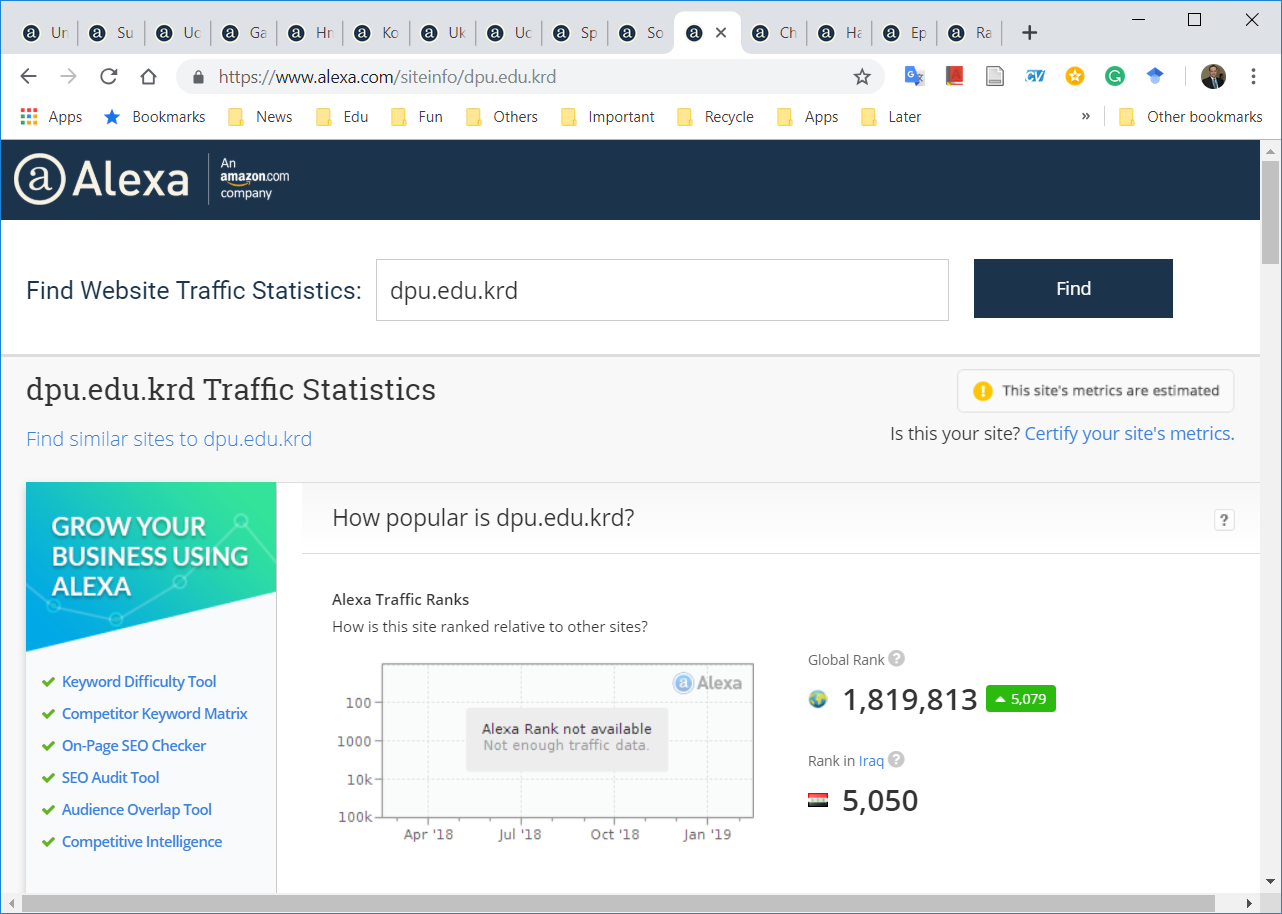The Statistics and ICT Center at the University of Zakho informs the readers of the website of the University of Zakho that Alexa Company for the ranking of websites. In the ranking, the website (www.uoz.edu.krd) has achieved second place in the Kurdistan region as the best and most read web for the second year in a row. This progress shows the effortless work and service in providing reliable information in three languages; Kurdish, Arabic, and English. Likewise, it constantly develops new pages to serve students e.g. Xedeng page. Therefore, the director and the staff of the Statistics and ICT Center congratulate the staff and students for this achievement.