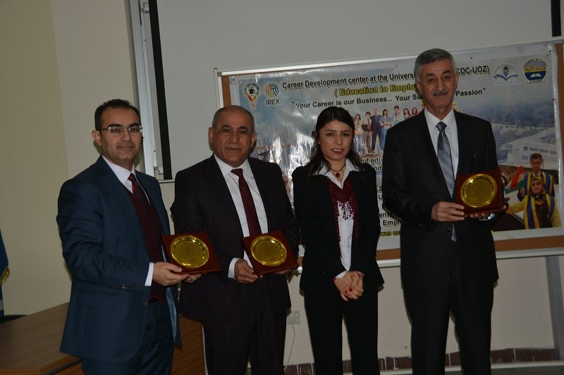 On Wednesday, February 8, 2018, at 10:30 am, Career Development Center at the University of Zakho, with the presence of the university president Assistant Professor Dr. Lazgin A. Jameel, the current Director of the Career Development Center Mrs. Dlin Adeeb Miro, and the former Director of the center Ms. Edi Saeed Kachal, has submitted certificates of internship program that is supported by the Ministry of Higher Education and Scientific Research to the students participated in the program. At the end, appreciation letters were given to those who were supportive to the center and the program.