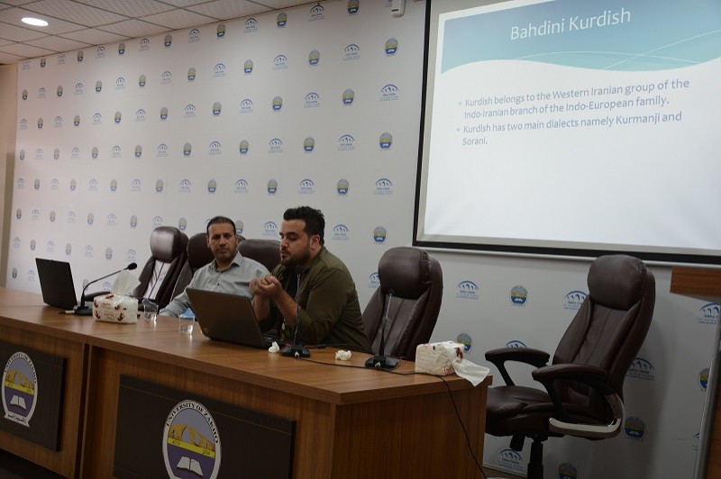 On Monday, October 28, 2019, at 1:00 pm, the English Department at the Faculty of Humanities conducted a workshop on "Some Aspects of Descriptive Language" for Mr. Hozan Othman and Mr. Nechirvan Hassan, at the hall of Khalil Khayali.