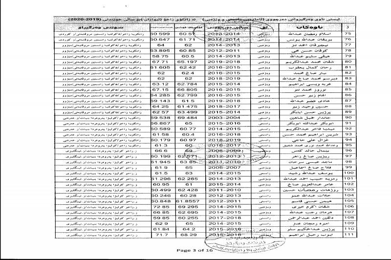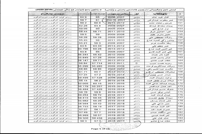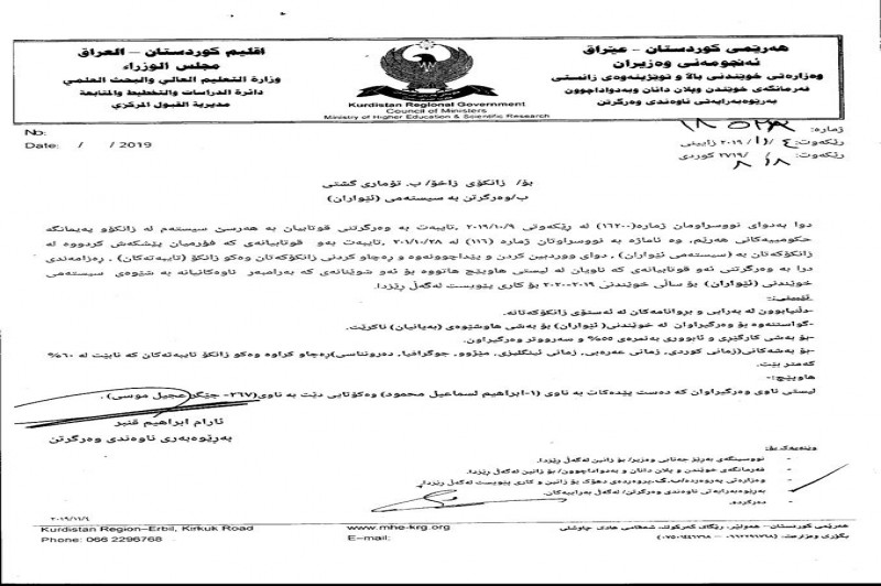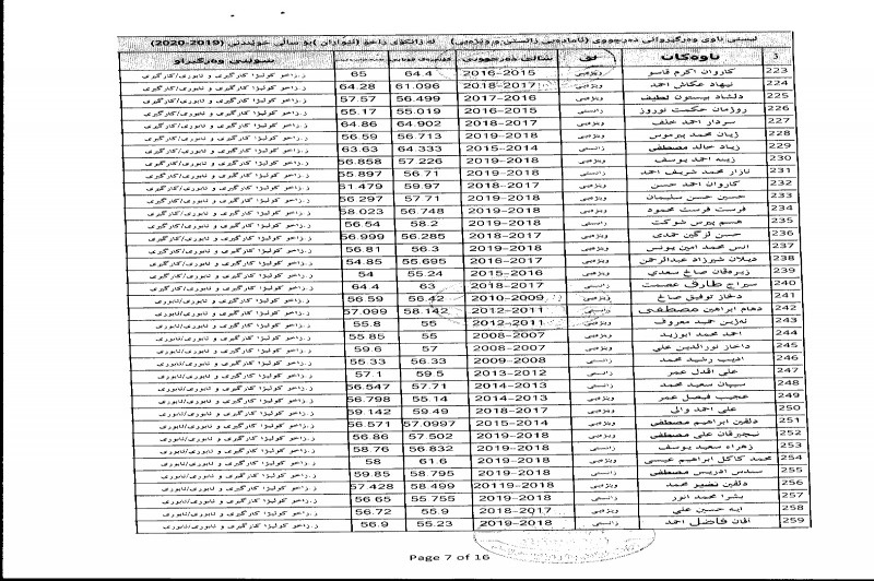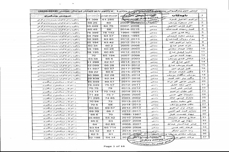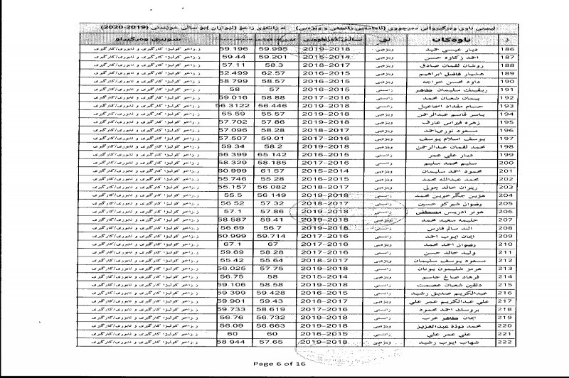 The Office of Vice President of the University for Student Affairs announces the names of students admitted to the evening study for the new academic year (2019-2020).
