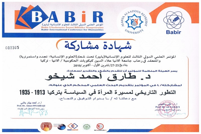 On October 25-27, 2019, Dr. Tariq A. Shexo-a lecturer at Social Science Department participated in the Third Babir International Conference for Humanities which was held in Alanya-Turkey.