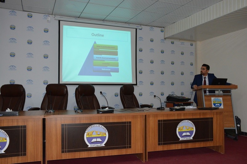 On Tuesday, December 10, 2019, at 12:00 PM, Deanery of the Faculty of Humanities in collaboration with the presidency of the English Department organized a workshop on "Modern and Postmodernism in Literature" at Khalil Khayali Hall. The workshop was presented by Ms. Kawyar Y. Ahmed and Mr. Lawend I. Mohammed.