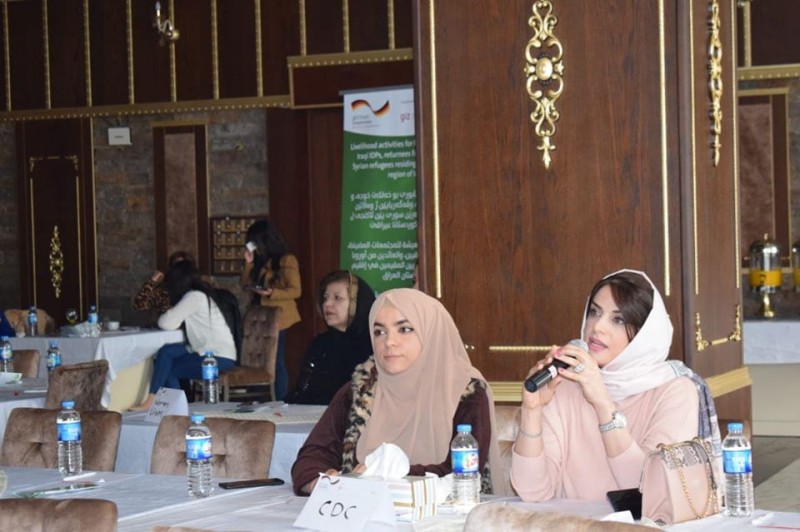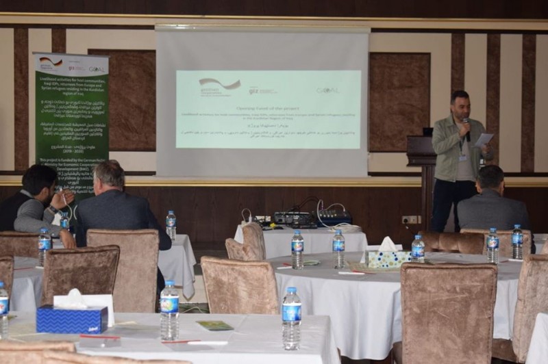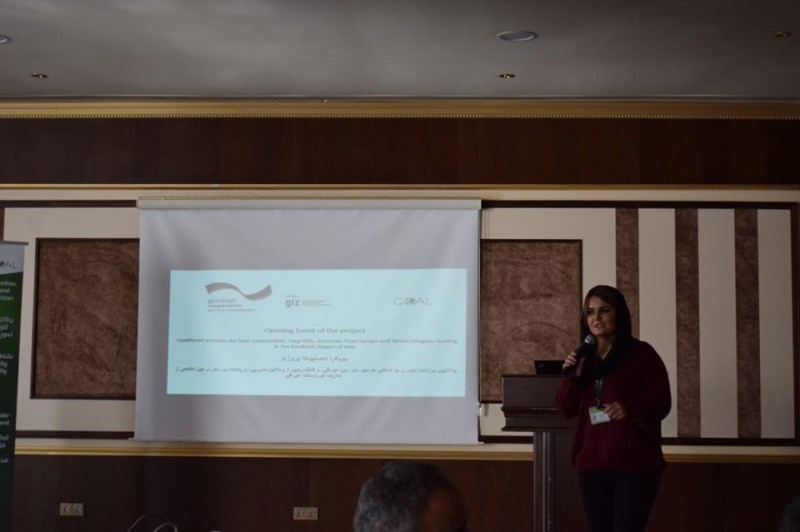 On Thursday, December 12, 2019, in the name of the University of Zakho Mrs. Dileen A.M.miro-Director of the Career Development Center with her staff Miss. Chiman Nadheer Ali attended the opening of the project of Livelihood activities for host communities, Iraqi refugees, returnees from Europe, and Syrian refugees residing in the Kurdistan Region which is going to be held by Goal Organization in cooperation with the international organization GIZ. At the beginning of the event, the manager of the project (Miss Hazheen Hamdi) illustrated for the attendees the ways of how to apply for the project.