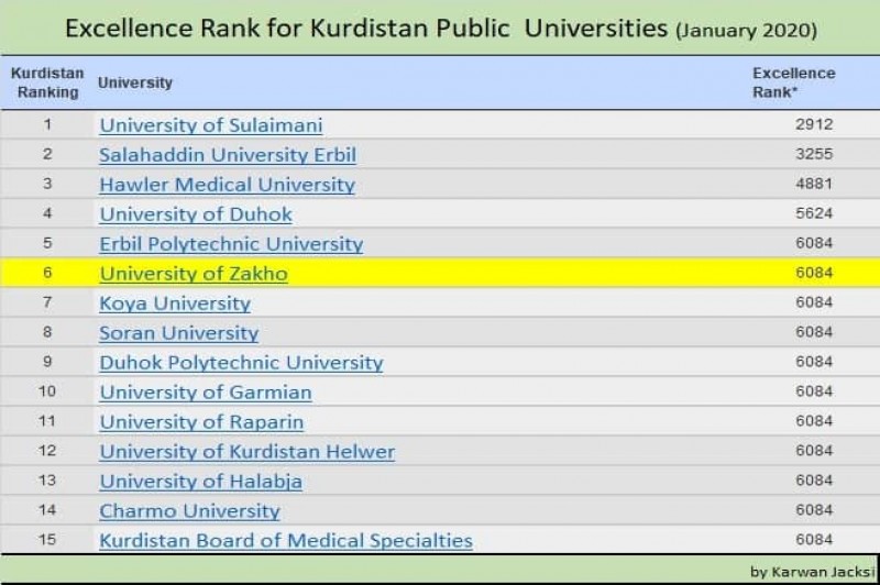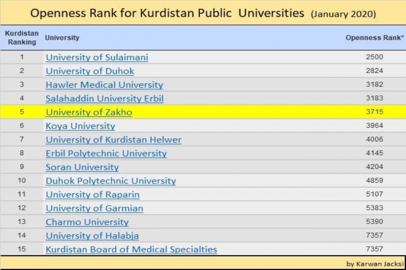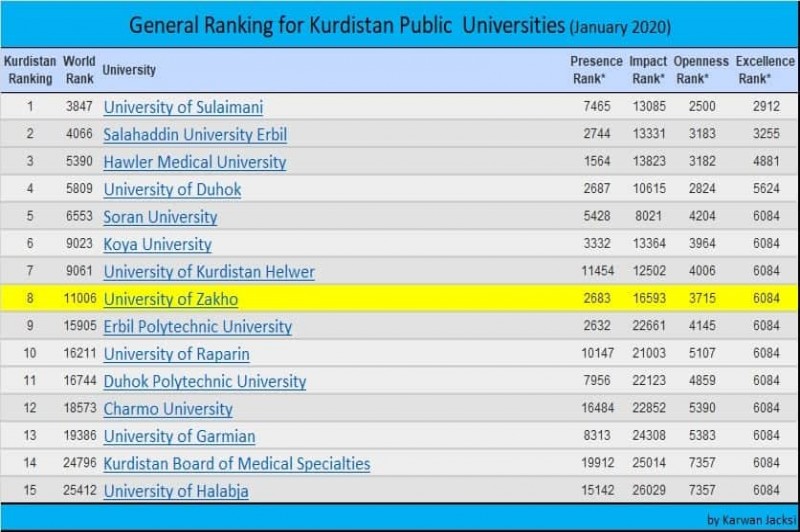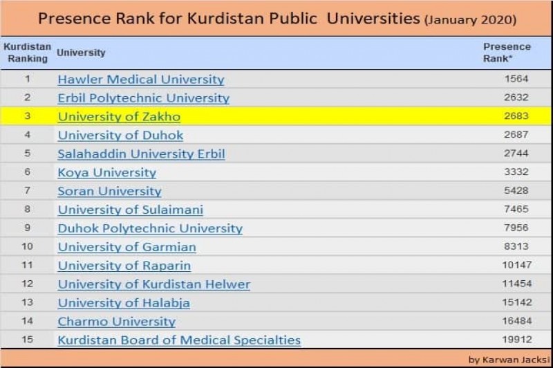 On January 2020, Webometrics announced the rankings of world universities in which the University of Zakho has made huge progress in the national and international rankings.