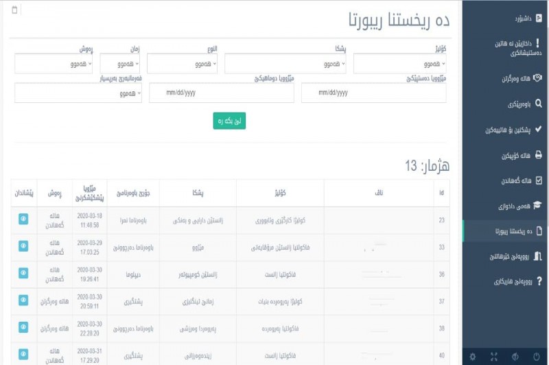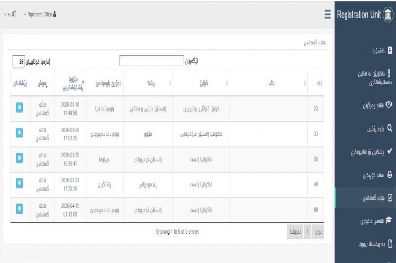 It is worth mentioning that the system is created by Mr.Muhammad Haitham under the supervision of each of Dr. Abdul-Hakim Othman-Director of General Registration Directorate, and Assistant Prof. Dr. Karwan Fahmy Sami-Vice President of the University for Student Affairs, and Mr. Kovan Abdul-Jabbar-Director of the Statistics and ICT Center.