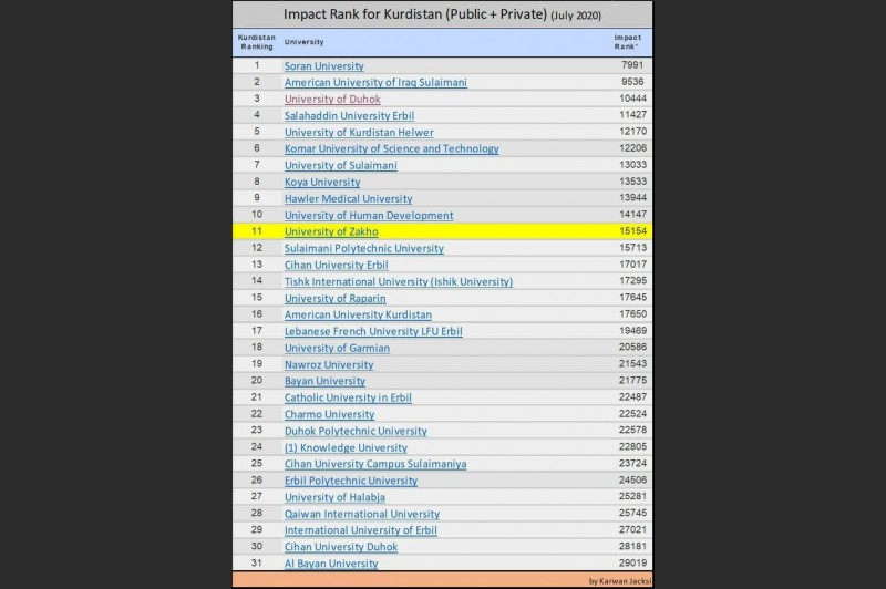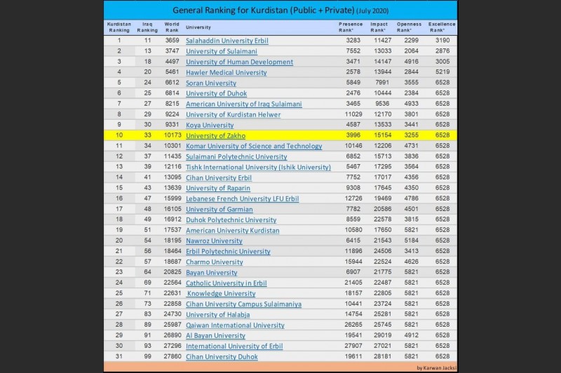 زانكۆیا زاخۆ د ڕێزبهندییا جیهانیدا بهردهوام د پێشكهڤتنێ دایه
