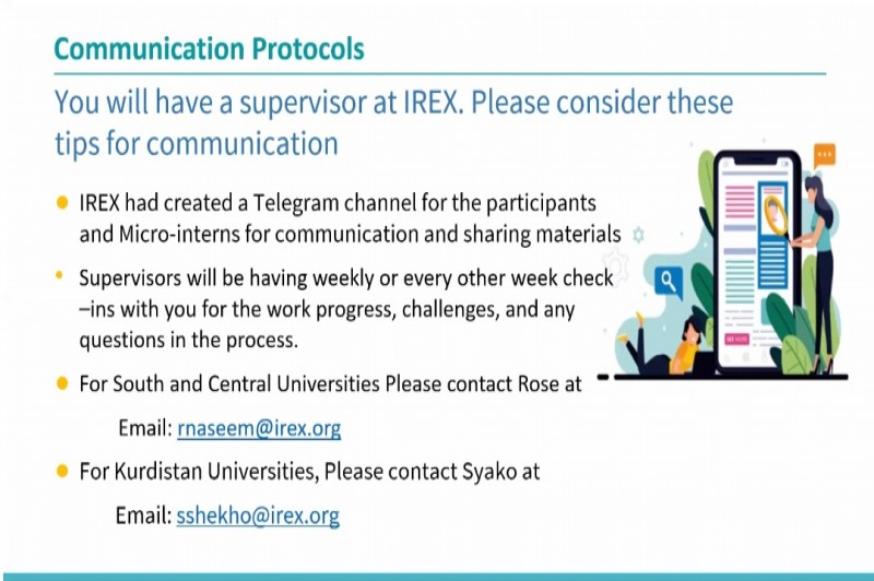 The University of Zakho participates in the online training course hold by the American Organization-IREX, online, with the support of the Public Relations Department of the United States Embassy in Iraq and in cooperation with the Ministry of Higher Education and Scientific Research in Baghdad and the Ministry of Higher Education and Scientific Research in the Kurdistan region. The course is about Career Preparation Academy.