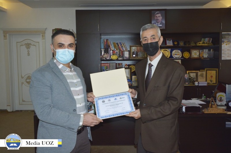 The President of the University of Zakho, Prof. Dr. Lazvin A. Jamil, honored a group of university professors with certificates of appreciation for their participation in the e-Learning Professional Training Program, which was established by the American IREX Organization in cooperation with the American Embassy in Baghdad and the Iraqi and Kurdish Ministries of Higher Education.