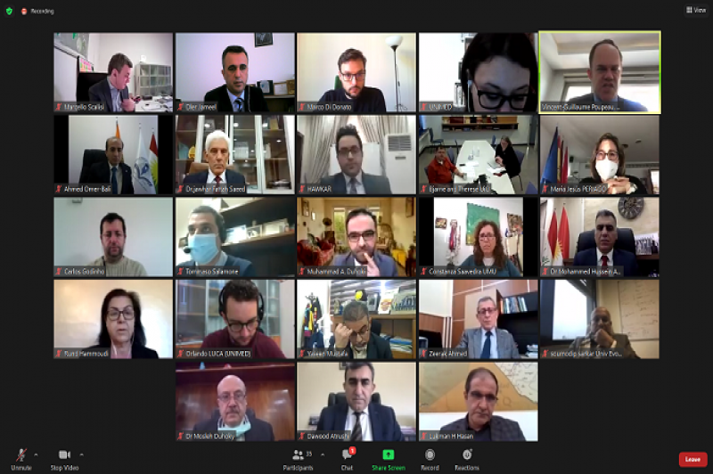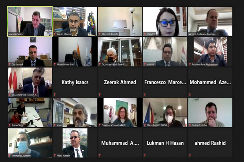 In the beginning, a virtual online meeting started by a speech delivered by director of UNIMID and another speech by the representative of the European Union office in Erbil. Then the representatives of the universities delivered their speeches on the project and their universities.