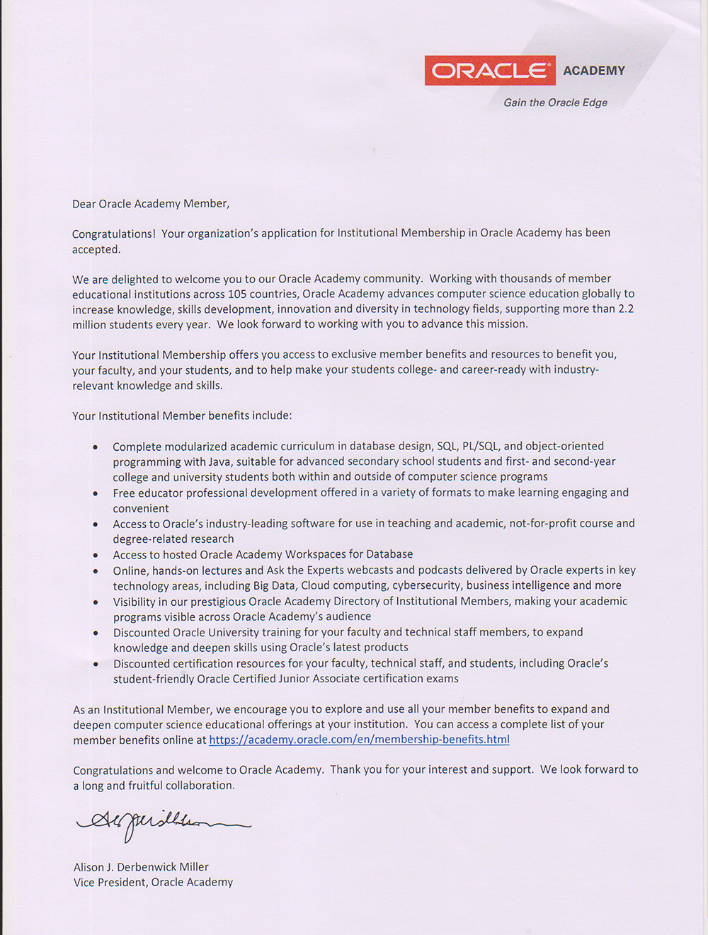 The University of Zakho’s application for institutional membership in Oracle Academy has been accepted. Working with thousands of member educational institutions across 105 countries, Oracle Academy advances computer science education globally to increase knowledge, skills development, innovation and diversity in technology fields, supporting more than 2.2 million students every year. With having this membership, the University of Zakho can access to exclusive member benefits and resources to benefit their academic staff and students, and to help make their students college- and career-ready with industry-relevant knowledge and skills. Indeed, the Institutional Member benefits include: - Complete modularized academic curriculum in database design, SQL, PL/SQL, and object-oriented programming with Java, suitable for advanced secondary school students and first- and second-year college and university students both with and outside of computer science programs. - Free educator professional development offered in a variety of formats to make learning engaging and convenient. - Access to Oracle’s industry-leading software for use in teaching and academic, not-for-profit course and degree-related research. - Access to hosted Oracle Academy Workspaces for Database. - Online, hands-on lectures and Ask the Experts webcasts and podcasts delivered by Oracle experts in key technology areas, including Big Data, Cloud computing, cyber security, business intelligence and more. - Visibility in our prestigious Oracle Academy Directory of Institutional Members, making your academic programs visible across Oracle Academy’s audience. - Discounted Oracle University training for your faculty and technical staff members, to expand knowledge and deepen skills using Oracle’s latest products. - Discounted certification resources for your faculty, technical staff, and students, including Oracle’s student-friendly Oracle Certified Junior Associate certification exams.