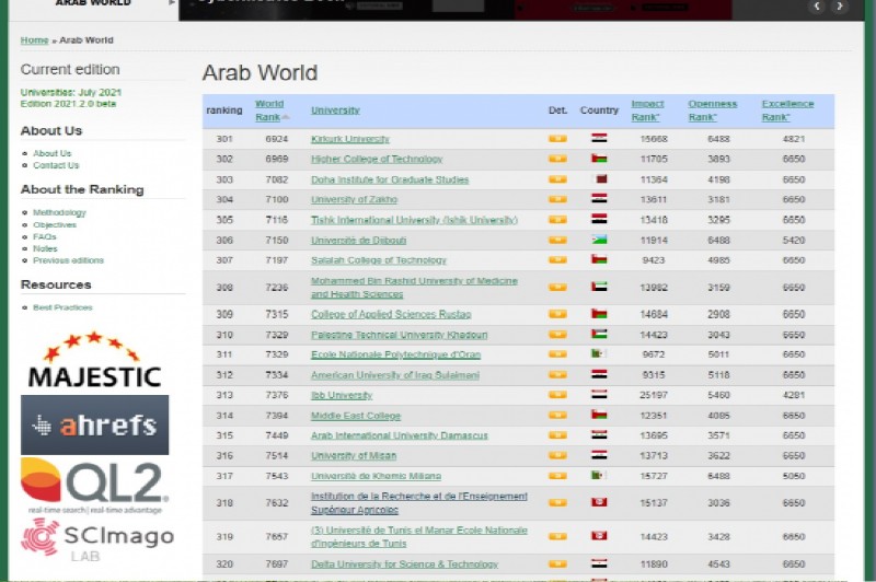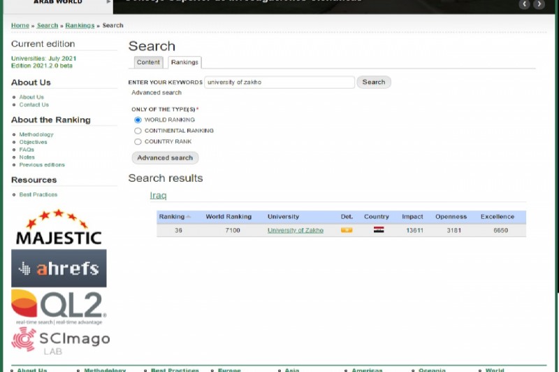 The new classification list published in July indicates that the University of Zakho ranked "7100" after it was ranked "9685" in the previous classification list published in January of this year. It also ranked "36" in the classification of Iraqi universities and "304" At the level of Arab universities.