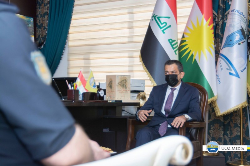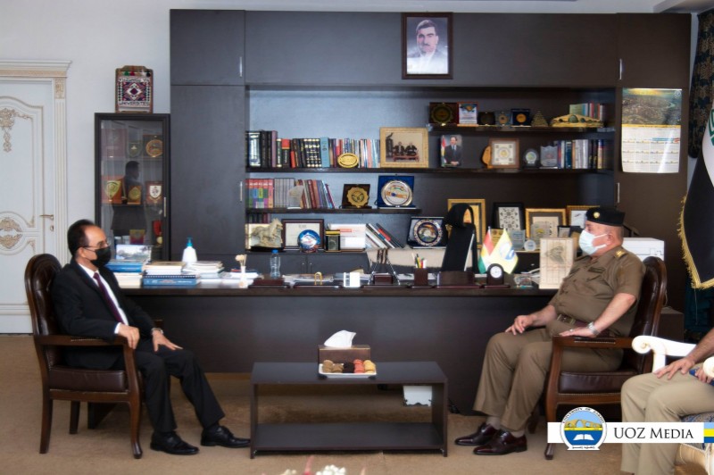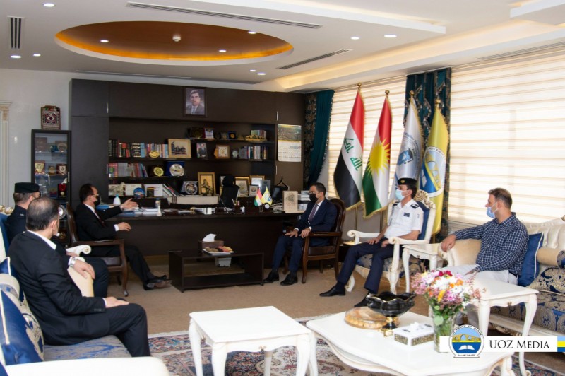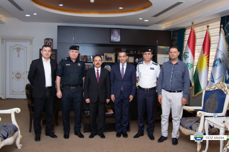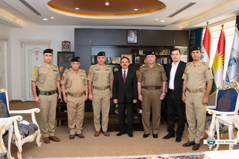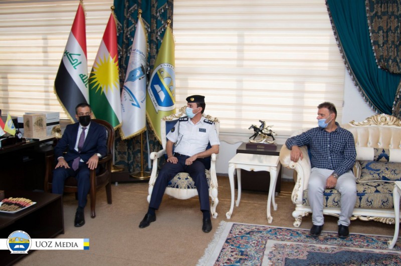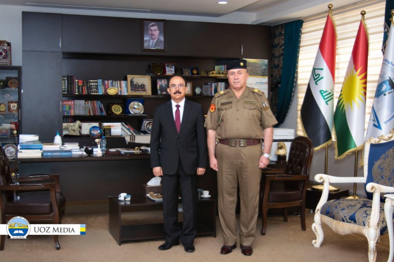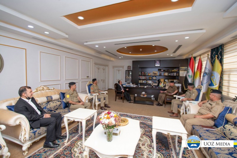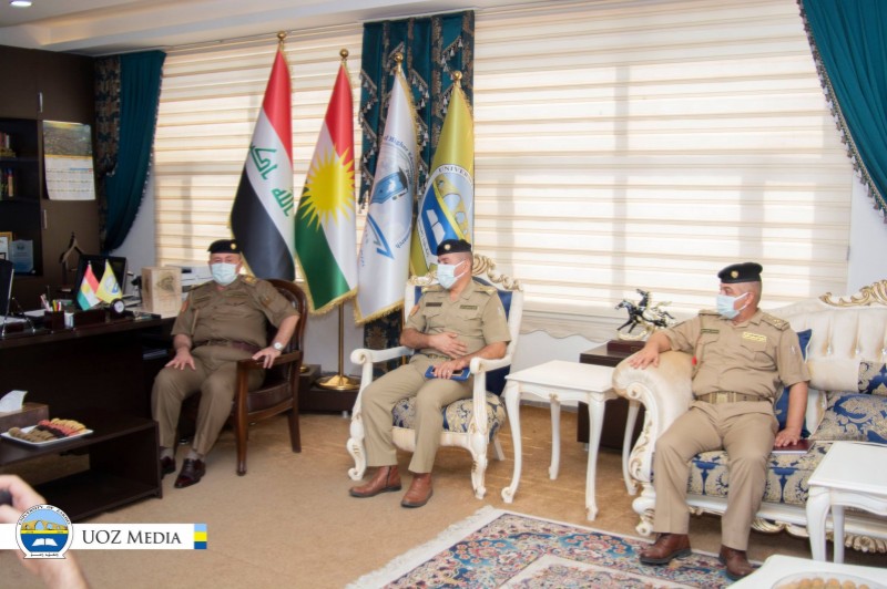 The two visits were made by Mr. Mushir Muhammad Bashir, Mayor of Zakho District, Lieutenant-Colonel Nizar Suleiman, Colonel Rashid Muhammad, and Major General Assem Goran, Dean of the Military College in Zakho, in order to congratulate the University President on his new position, succeeding Prof. Dr. Lazgin A. Jamil.