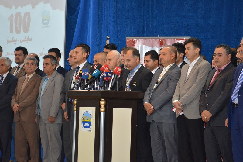 On Monday the 16th of May, 2016, at 10:00 a.m. at the Conference Hall of the Faculty of Science at the University of Zakho, a session with a political theme to mark the 100 anniversary of Sykes- Picot agreement was held under the slogan" By our blood we've removed the borders that were once drawn by pen."