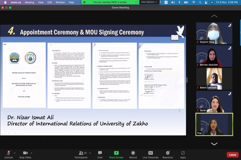 On the 5th of November 2021, the Career Development Centre at the University of Zakho participated in a workshop entitled (Action Plan for Implementing HWPL Peace Education in 2022). This workshop consisted of a panel that was arranged by the Korean international organization HWPL for Peace Education.