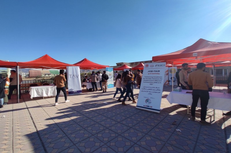 On the 2nd of December 2021, Mr. Ahmed Loqman, the coordinator of the Career Development Centre CDC at the University of Zakho along with some of the mentioned university's students attended the job fair, which was organized by the Duhok Polytechnic University and NRC Organization.